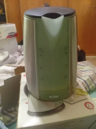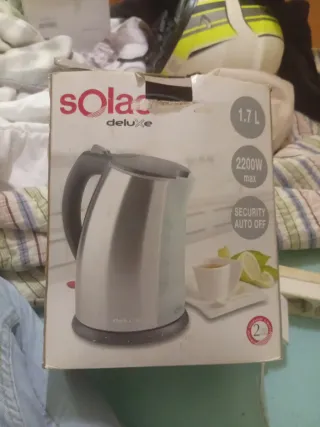 Hervidor de agua Solac Deluxe con una capacidad de 1.7 litros. - Potencia de 2200W. - Función de apagado automático de seguridad. - Diseño moderno en acero inoxidable.