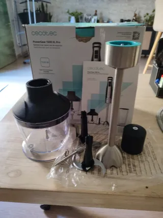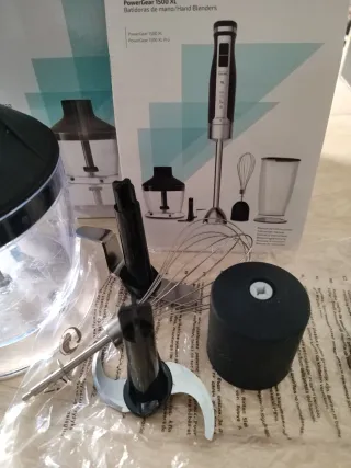 Accesorio para batidora de mano Cecotec PowerGear 1500 XL Pro. - Incluye vaso picador. - Varilla de acero inoxidable. - Cuchilla. - Varillas para montar. - Accesorio para picar.