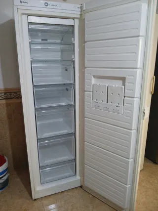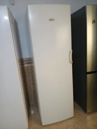 Congelador vertical de la marca Balay en color blanco. - Diseño moderno y funcional. - Tirador integrado en la puerta.