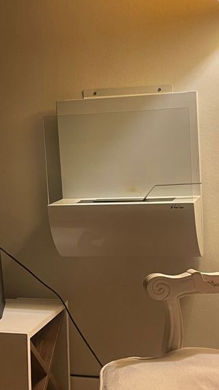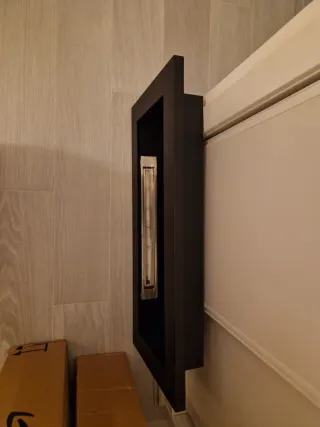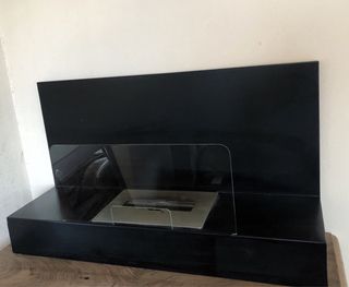Estufa de bioetanol negra, con cristal protector. Con colgadores para la pared por detras. El precio es, como pone en el anuncio, 15€ (quince euros). Medidas en la última foto. Es de Metal.