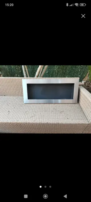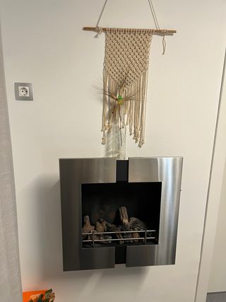 Preciosa cheminea de bioetanol, perfectamente funcional, su acabado es inoxidable, consta de 3 recipientes donde alojar el bioetanol ( alcohol de remolacha), no produce humos por lo que se puede instalar en apartamentos. Actualmente la tengo montada al pie de cama, es muy relajante quedarte dormido viendo el fuego, dado su peso no hago envío, sería entrega en mano.