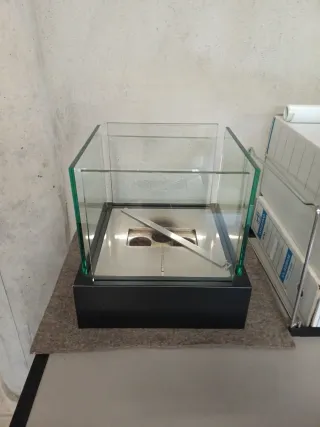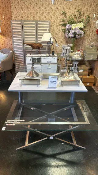 Chimenea Estufa de bioetanol nueva. Diseño moderno y elegante. Muchas unidades en stock - Acabado plateado y transparente. - Fabricada en metal y cristal 📞 614 059 707 En Calle Lanzarote 5, nave 28 San Sebastián de los Reyes Mueble Salón baño hall entrada diseño piel recibidor habitación dormitorio completo comedor mesillas lámparas decoración mesa silla cama colchón somier canapé cuadro arte armarios sofá espejo cajonera alfombra encimera oficina taburete cocina isla americana sinfonier aparador radiador cojín estufa de bioetanol con un diseño moderno y minimalista. Perfecta para añadir un toque acogedor a cualquier espacio. -