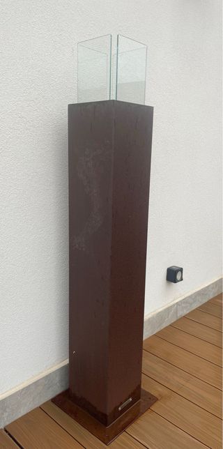 Elegante estufa decorativa de bioetanol. Usada una única vez. La vendemos por traslado de domicilio. - Diseño moderno y minimalista. - Fabricada en metal resistente. Pesa unos 30 kg. Preferible entrega en mano.