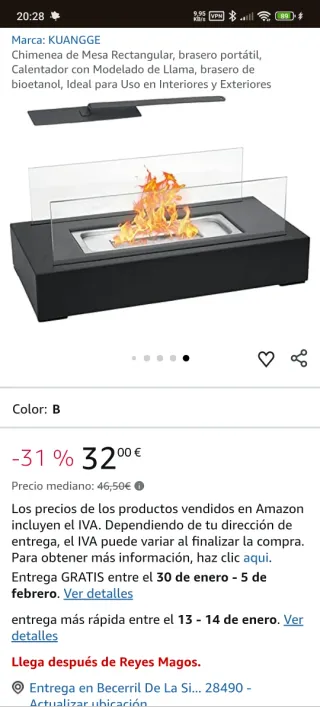 Impecable Casi Nuevo, solo 3 usos. Ideal para calentar estancias sin tener que hacer instalación. Regalo garrafa de bioetanol. Lo vendo porque al final hemos cogido una pellet