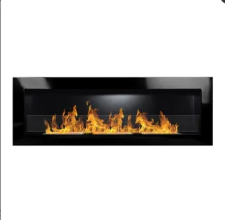 Elegante chimenea de bioetanol con un diseño moderno y acabado negro. Funciona Perfectamente , se puede colgar o empotrar. - Tres quemadores para una mayor capacidad de fuego. - Frontal de cristal templado para seguridad y estética. - Marco exterior en acabado negro mate.