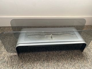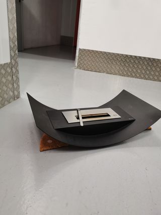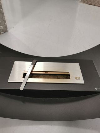 Chimenea de bioetanol seminueva con un diseño moderno y elegante. - Fabricada en acero inoxidable. - Acabado en color plata y negro. - Medidas 110x54