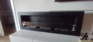 - Estufa de bioetanol que sirve tanto para empotrar como oara colocación sobre pared. - NUEVA SIN USO. Viene en su envoltorio tal cuál se compró. - Negro mate. - 90cm largo x 40cm alto x 12cm profundidad. - NO incluye bioetanol.