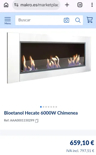 Modelo Purline Hecate Biochimenea mural panorámica de gran anchura con triple llama y vidrio templado. Medidas (LxPxH): 150 x 19 x 54 cm Medidas parte que se encastra: 120 x 16,7 x 47 cm Peso: 36 kg Llamas reales, sensación de calor casi inmediata. Sin humos, sin ceniza, fácil mantenimiento. Independiente de otra fuente de energía como gas o electricidad. Usada. Algo sucia por una obra, aunque la he limpiado, necesita más limpieza, de ahí su bajo precio. Falta el accesorio metálico que se usa para acercar la llama al combustible, pero se puede conseguir fácilmente. Solo para recoger, no se envía. Precio original más de 700€.