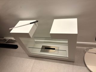 Elegante chimenea de bioetanol con un diseño contemporáneo. A penas uso. Se entrega con 2 garrafas de 5litros de bioetanol - Estructura principal en color blanco. - Detalles en acabado plateado. - Panel frontal de cristal.