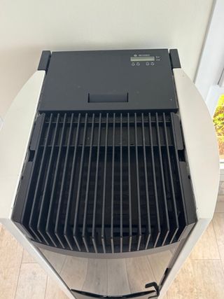 Estufa de biomasa, ideal para pellets y hueso de aceituna. Fabricada en metal resistente y con un diseño moderno. - Color gris oscuro. - Asa superior para facilitar el transporte. - Rejilla frontal para ventilación.