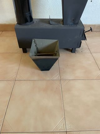 Estufa de biomasa usada sólo un invierno. - Material acero. - Color negro y gris. - Peso 30 kg.
