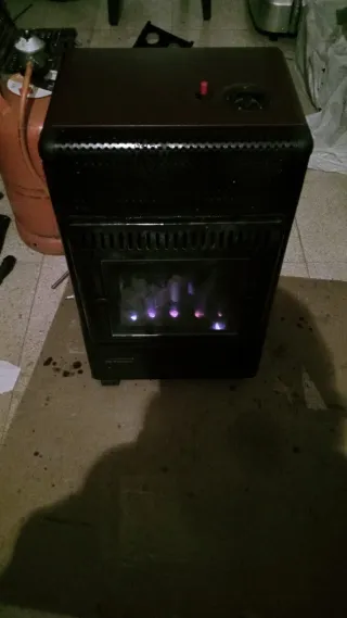 Estufa de gas portátil, ideal para calentar espacios.FUNCIONA MUY BIEN - Diseño cilíndrico. - Rejilla protectora frontal. - Llama azul visible.