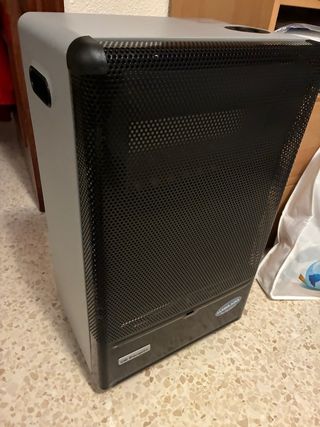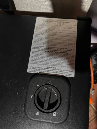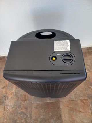Estufa de gas Orbegozo con tecnología Llama Azul. Funciona correctamente. - Diseño moderno en color gris y negro. - Fabricada en plástico resistente.