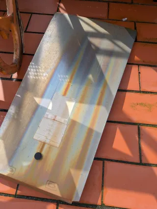 Estufa de gas con detalles de óxido y un cristal roto. Ideal para piezas o reparación. - Estructura metálica. - Panel de cristal.