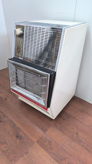 estufa de gas butsir vintage de los años 70, funciona perfectamente, se entrega con su regulador, pero sin bombona, una pasada, tiene ruedas y es portátil