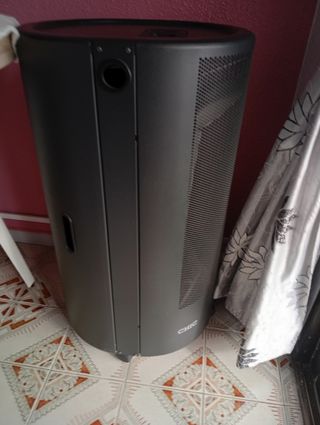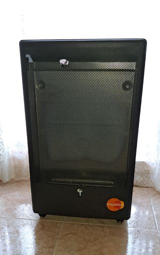 Estufa de gas Equation en color negro. Ideal para calentar espacios. Estufa de llama azul gas/propano Para un espacio de unos 35m2 max. 4200W Se ha utilizado dos veces. Nueva vale 189 € - Diseño cilíndrico con rejilla. - Base con ruedas para facilitar su movilidad. - Detalle de logo de la marca en la parte frontal.