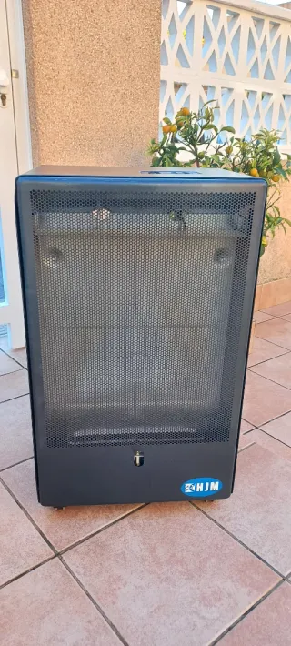 Estufa de gas HJM en color grisáceo Fabricada con materiales resistentes metálicos. CON ENCENDIDO ELECTRÓNICO. En perfectas condiciones, apenas sin uso pero con unos roces. Se aprecian en la última foto. - Diseño moderno y funcional. - Ideal para calentar espacios.