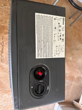 Estufa de gas Qlima, de color negro y estructura metálica. Se encuentra en buen estado. lo entrego en mano debido a que es aparatoso de enviar - Funciona con gas. - Dispone de un regulador de intensidad.