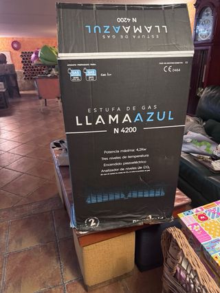 Estufa de gas Llamaazul modelo N 4200. Diseñada para proporcionar calor de manera eficiente. - Requiere instalación en espacios ventilados. - Necesita un regulador y tubo de gas para su funcionamiento. tiene tubo de gas se ha usado un invierno