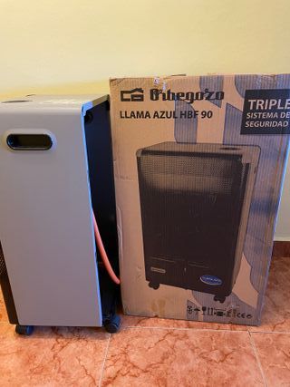 Estufa de gas Orbegozo Llama Azul HBF 90 – Ideal para reparar o piezas Estufa de gas Orbegozo HBF 90, 3 años de uso, completa con manguera y regulador de butano, y caja original. Hace chispa pero no llega a encender, incluso con bombona nueva. Se vende únicamente para reparación o repuesto. 💶 25 € (negociable) 📍 Guadalajara capital — entrega en mano en el portal, pago en efectivo o bizum. Se agradece traer billetes pequeños, no dispongo de cambio. - Modelo HBF 90. - Sistema de seguridad integrado. - Diseño moderno en color gris y negro.