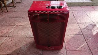 Estufa de gas con tecnología de llama azul. Su diseño combina acabados en negro y rojo. - Fabricada en metal y plástico. - Cilindro con rejilla. - 4,2 Kw Tiene uso de 3 años peor en perfectas condiciones. No incluye bombona de gas