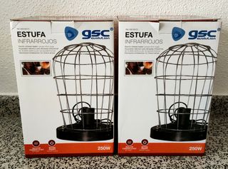 2 estufas de infrarrojos para bombillas de hasta 250W, bajo consumo y calor agradable. NO viene con bombilla.