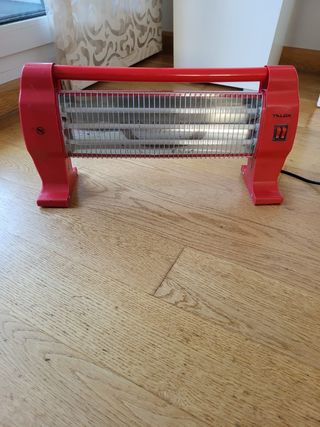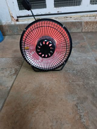 Calefactor infrarrojo con tubo de cuarzo. Nunca usado. Funciona perfectamente como puede verse en la foto. 2 niveles de potencia. Mide 20 CMS de diámetro. Ideal para sobremesa o bajo mesa.