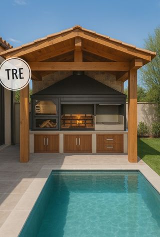 Barbacoa de obra con horno y leñero