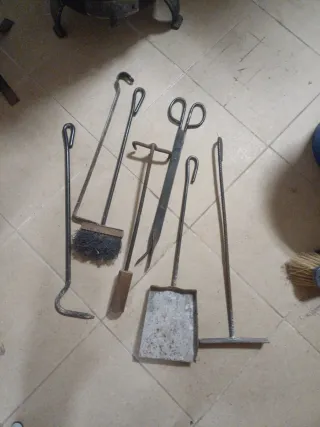 Conjunto de utensilios para estufa de leña o chimenea. Incluye soporte y varias herramientas. - Soporte de metal con diseño. - Incluye 7 Utensilios para el cuidado de la estufa