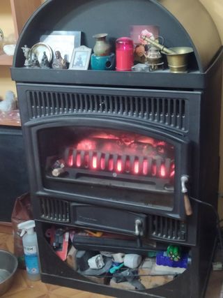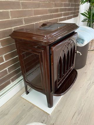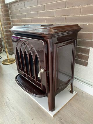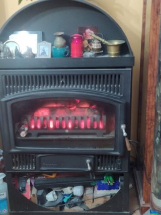 Estufa de leña muy decorativa,con salida de humos de 20 y que da mucho calor.