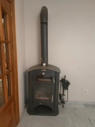 Sólo recogida - Precio a consultar!!! Estufa de leña con horno fabricada en hierro fundido. Cuenta con un diseño robusto y elegante, ideal para calentar tu hogar y cocinar. - Puerta del horno con cristal. - Termómetro integrado en la parte superior. - Cajón cenicero extraíble. -Tubos exteriores y anclajes de acero inoxidable . Se vende conjuntamente (precio del anuncio)o por separado.