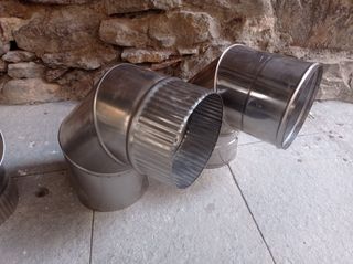 Tubos estufa inoxidable. 150 diàmetro. Dos tubos dobles para salida exterior evitando asi condensaciones. Solo se han usado UNA VEZ los tubos dobles y el simple. Los codos son nuevos. El sombrerete tiene un mes de uso. Se entrega en mano en Tremp, Salas de Pallars o la Pobla de Segur.