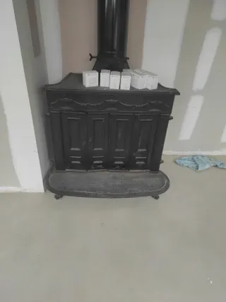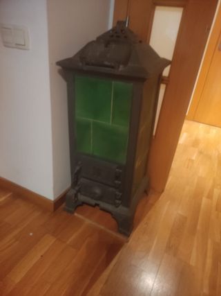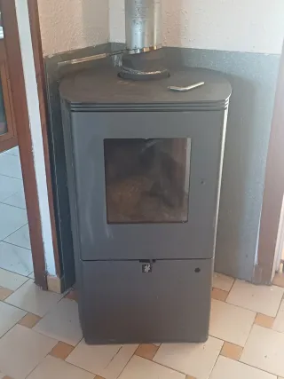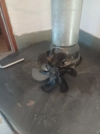 Estufa de leña con ventilador para distribuir el calor. Tiene 2 años de uso. - Ventilador de 5 aspas. - Material metálico.