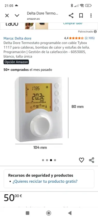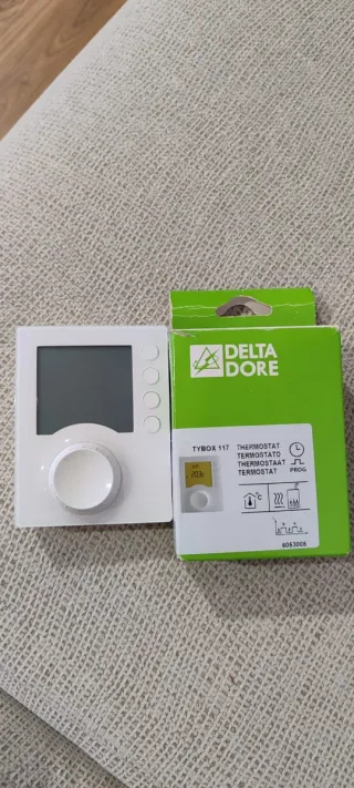 Termostato digital programable para calderas, bombas de calor y estufas de leña. Gestión de la calefacción - Modelo TYBOX 117. 6053005 - Pantalla digital. - Dial giratorio para ajuste de temperatura. - Botones de control.