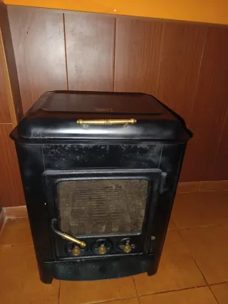 Estufa de leña de hierro fundido en muy buen estado, solo es necesario cambiar cajón de cenizas . Se vende estufa de leña robusta, ideal para calentar casas rurales, salones o espacios amplios. Fabricada en hierro fundido, conserva perfectamente el calor y es muy eficiente. ✅ Buen estado ✅ Puerta frontal con cierre hermético ✅ Rejilla y cajón recogecenizas ✅ Tapa superior maciza ✅ Estilo rústico, resistente y duradera ✅ Muy buen rendimiento térmico Motivo de la venta: cambio de sistema de calefacción. Precio: 250 euros Ubicación: Castrelo de Miño Se puede ver sin compromiso
