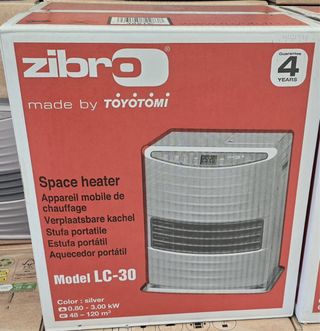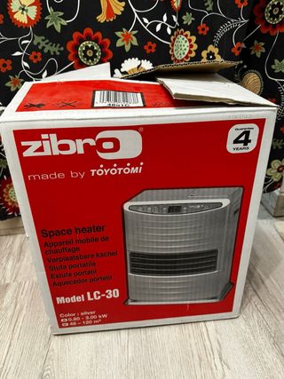 Estufa de parafina Zibro en color gris y plateado, made by Toyotomi, modelo LC-30. Funciona perfectamente, calienta rápido y usa muy poca electricidad. Se entrega en una caja. - Fabricada en metal y plástico. - Made by Toyotomi Entrega en Ripollet y BCN, hago envíos por wallapop. Visita mi perfil, hay muchos más artículos y oportunidades.