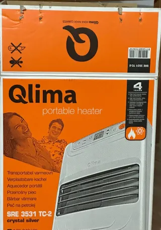 Estufa portátil de parafina Qlima, modelo SRE 3531 TC-2. - Diseño moderno en color plata. - Tecnología de alta eficiencia para un confort térmico superior. - Portátil y fácil de transportar. - Ideal para calentar espacios de forma rápida y eficiente.