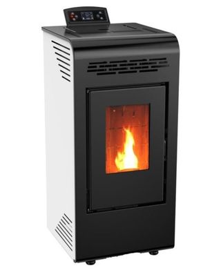 Estufa de pellets para pasillo, modelo BAR1026, con opción de canalización. - Diseño moderno en negro y blanco. - Ventana frontal de cristal para ver las llamas. - Panel de control superior.