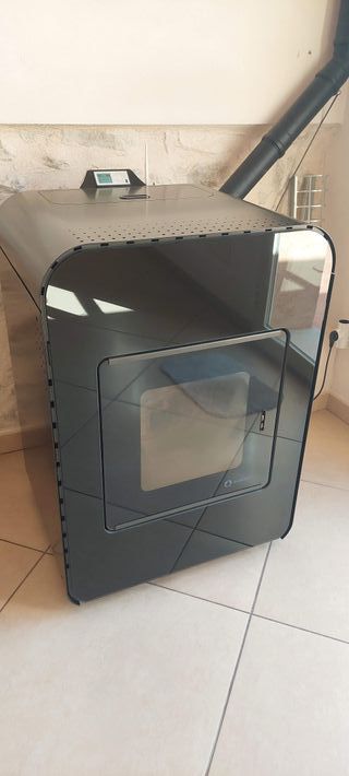 Estufa de pellets de diseño moderno y funcional. - Fabricada en metal resistente. - Color negro mate. - Vendo con los tubos ( unos 2 metros) - Es muy económica y calienta bastante bien -También puede usar orujo, pellets, hueso de aceituna, hueso de melocotón, biomasa, policombustible, Salida de humos de 100mm. Esta estufa no funciona con leña y necesita una salida de humos o chimenea.