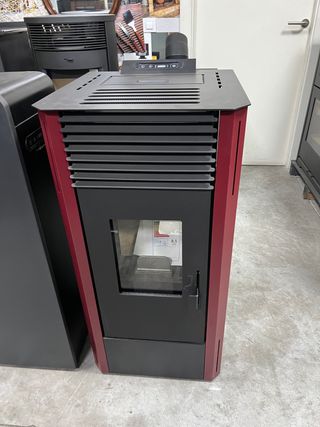 Estufa de pellets ECOFOREST MOON en color rojo y negro. **Negociable con cabeza, abstenerse ridiculeces** - Diseño moderno y elegante. - Chimenea negra alta. - Usada solo dos inviernos - Precio de venta al público 2500€ + 400€ de los tubos en negro - Se encuentra ya desmontada - Se incluyen los tubos en el precio ** Tiene un fallo en la CPU** que simplemente es cambiarla. Potencia: 7 kW. Rendimiento: 88 %. Tolva: 11 kg. Autonomia: 18-7 h. Consumo: 609-1522 g/h. Peso: 79 kg. Diámetro salida de gases: 80 mm. Diámetro entrada de gases: 60 mm.Policombustible (pellets, cáscara de almendra, hueso aceituna).