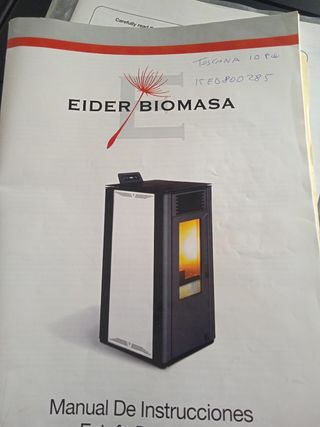 Estufa de pellets eider toscana 10 kW.canalizable tanto a habitación colindante como a planta,se a usado solo dos inviernos,calienta muy bien y con un consumo bastante reducido,nueva costó 1.900€.se daría con todos los tubos para su instalación.esta prácticamente nueva...(Pellets, estufa,policombustible,leña,radiador,calefaccion)...