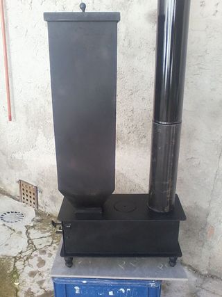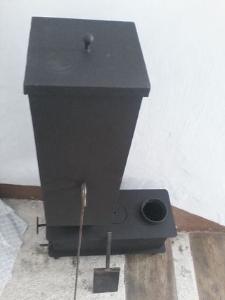 Estufa de biomasa para cascaras ya sean de hueso de aceituna, pistacho, piñas, piñones etc se regala el juego de limpieza y un cubo grande lleno de cascaras