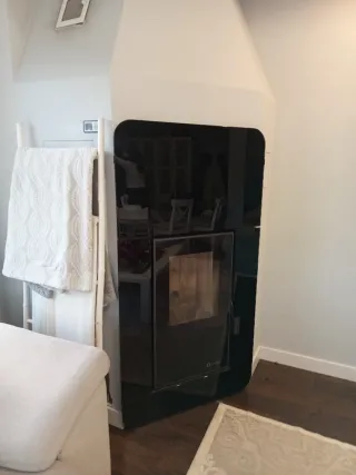 Estufa de pellets con un diseño moderno y elegante. Funciona perfectamente y no requiere apenas mantenimiento. - Es policombustible. - Se regula tanto con termostato como por potencia. - El frontal de cristal aporta calidez al ambiente. - Rejilla superior de ventilación. Se vende junto con las instrucciones como su aspirador de cenizas.