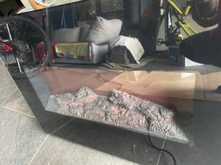 Lareira eléctrica com un diseño moderno elegante - Acabado en vidrio. - Efecto llamas . Enciende y calienta pero calienta la resistencia y se apaga.