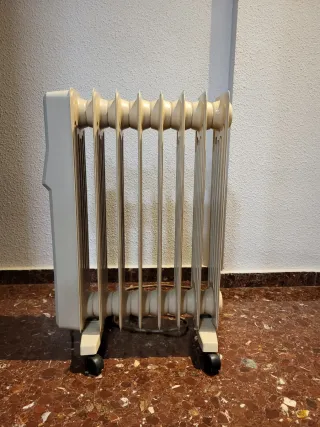 Calefactor eléctrico DeLonghi Vento con ruedas para fácil movilidad. Ideal para calentar estancias pequeñas. - Diseño vertical y compacto. - Ruedas para desplazamiento. - Panel de control con selector de potencia. Tiene unos pequeños rasguños como se ven en la foto Funciona perfectamente