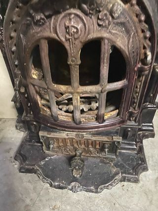 Antigua estufa salamandra de la marca Reddis Reus ideal para calentar ambientes con carbón o leña. Se encuentra en buen estado, aunque muestra señales de uso. - Perfecta para una casa de campo o para dar un toque rústico a tu hogar. - Diseño clásico y elegante. - Piezas de hierro fundido resistentes. Tubos de salida de humos incluidos. Se recogería en Las Navas del Marqués o en Navalperal de Pinares (Ávila)
