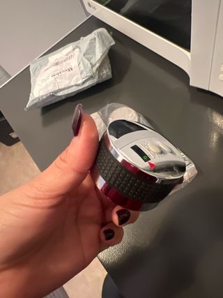 Regulador de gas plateado con base negra y salida para manguera. - Certificación CE 2531. - Caudal de 2.5 kg/h. - Válido para propano y butano.