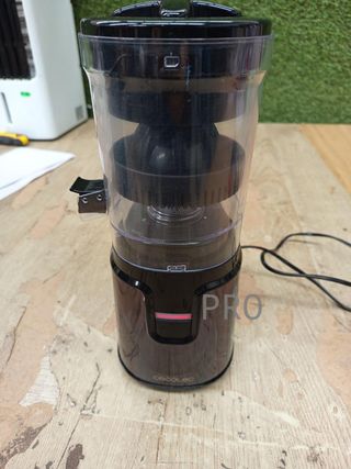 Exprimidor eléctrico de alto rendimiento capaz de exprimir varias naranjas a la vez sin necesidad de cortarlas previamente. Su diseño único permite introducir las piezas enteras, facilitando un zumo rápido y limpio en cuestión de segundos. Detalles: Marca: Citring. Tecnología: Sistema de exprimido vertical por presión que aprovecha al máximo la fruta. Capacidad: Interior con moldes para exprimir hasta 3 piezas simultáneamente. Estado: Esta en perfectas condiciones.el cable y el enchufe están en perfectas condiciones.