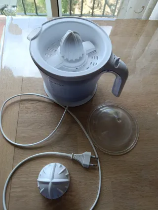 Exprimidor eléctrico de la marca Taurus. Se ha usado poco, pero el color blanco está un poco desgastado.
