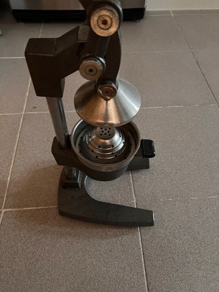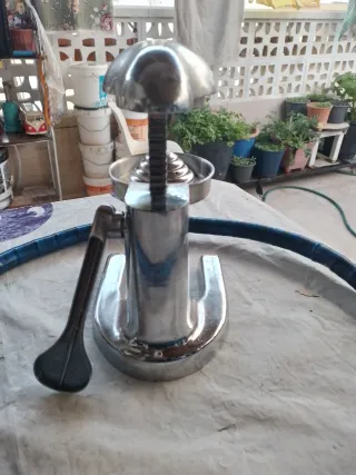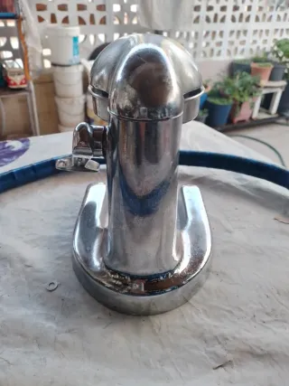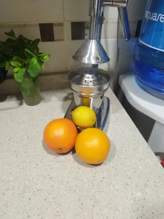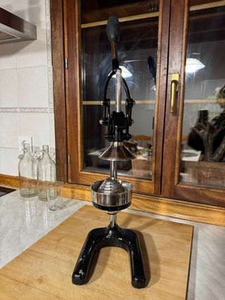 Exprimidor manual de diseño profesional, ideal para hostelería. - Marca The Master of Life (PAT.) - Construcción robusta en metal cromado. - Base estable y amplia. - Prensa ergonómica para un uso cómodo. - Desgaste estético metal por tenerlo guardado (ver fotos). - Precio negociable.
